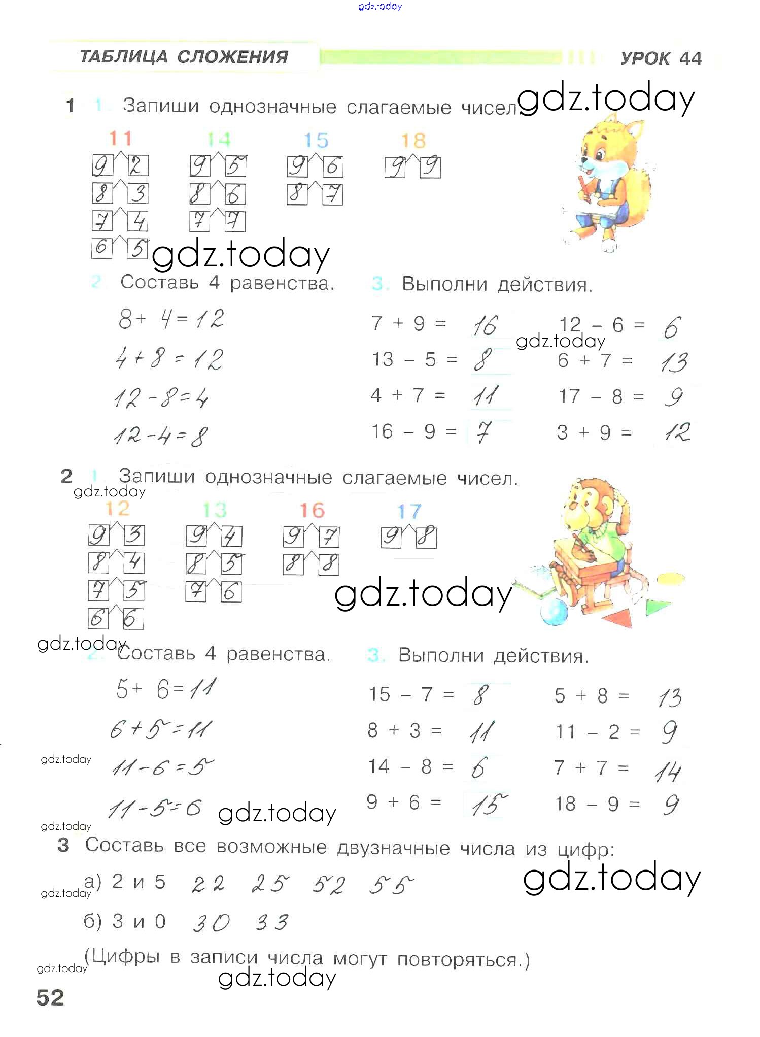 На страницах сайта gdz.today вы найдете учебный и вспомогательный материал, направленный на улучшения знаний школьной программы. ГДЗ - онлайн мир знаний Решение к части 3. Страницы 52 Рабочей тетради по Математике для 1 класса Петерсон Ювента Учусь учиться 2016