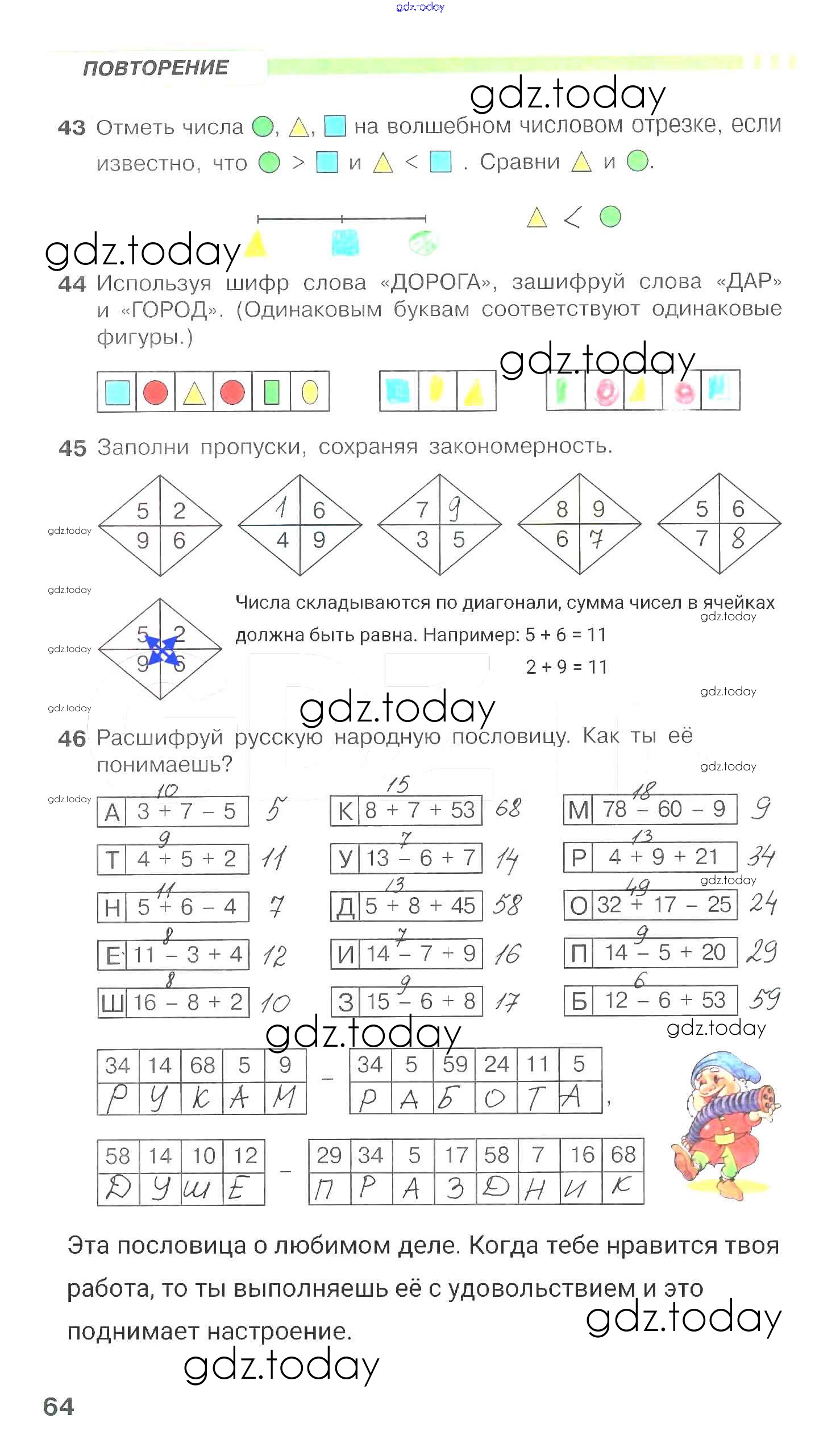 На страницах сайта gdz.today вы найдете учебный и вспомогательный материал, направленный на улучшения знаний школьной программы. ГДЗ - онлайн мир знаний Решение к части 3. Страницы 64 Рабочей тетради по Математике для 1 класса Петерсон Ювента Учусь учиться 2016