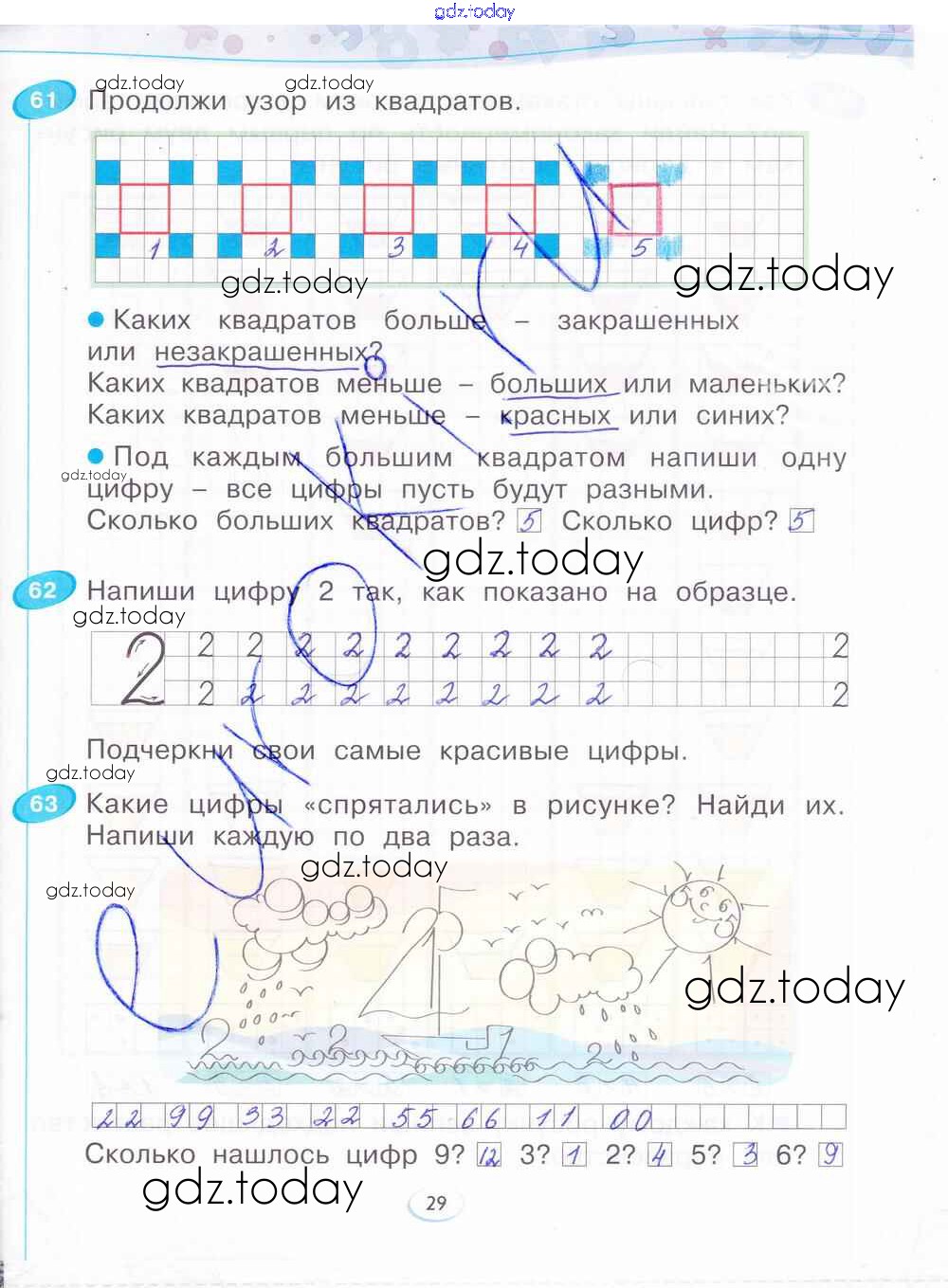 На страницах сайта gdz.today вы найдете учебный и вспомогательный материал, направленный на улучшения знаний школьной программы. ГДЗ - онлайн мир знаний Решение к части 1. Страницы 29 Рабочей тетради по Математике для 1 класса Бененсон Фёдоров 2015
