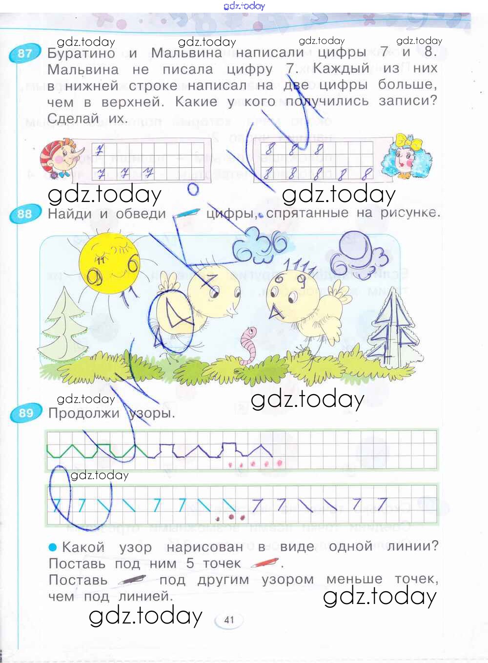 На страницах сайта gdz.today вы найдете учебный и вспомогательный материал, направленный на улучшения знаний школьной программы. ГДЗ - онлайн мир знаний Решение к части 1. Страницы 41 Рабочей тетради по Математике для 1 класса Бененсон Фёдоров 2015