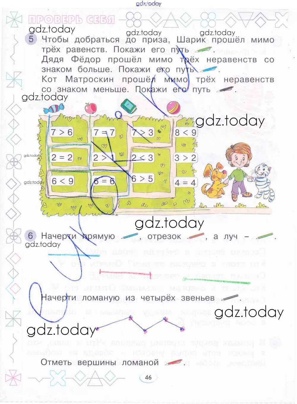 На страницах сайта gdz.today вы найдете учебный и вспомогательный материал, направленный на улучшения знаний школьной программы. ГДЗ - онлайн мир знаний Решение к части 1. Страницы 46 Рабочей тетради по Математике для 1 класса Бененсон Фёдоров 2015