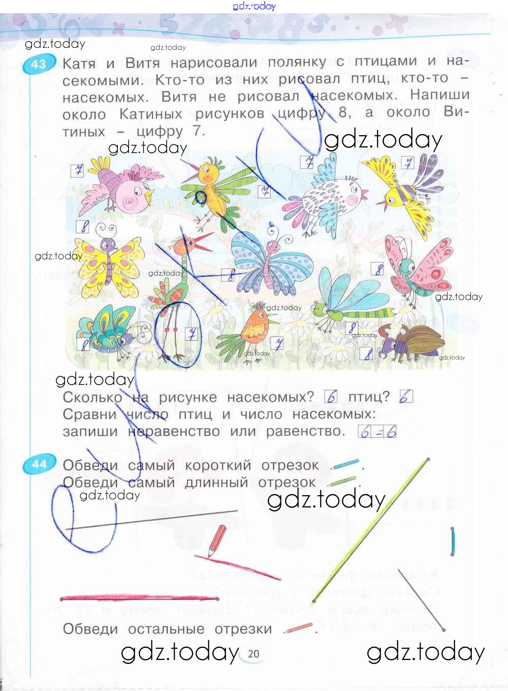 На страницах сайта gdz.today вы найдете учебный и вспомогательный материал, направленный на улучшения знаний школьной программы. ГДЗ - онлайн мир знаний Решение к части 2. Страницы 20 Рабочей тетради по Математике для 1 класса Бененсон Фёдоров 2015
