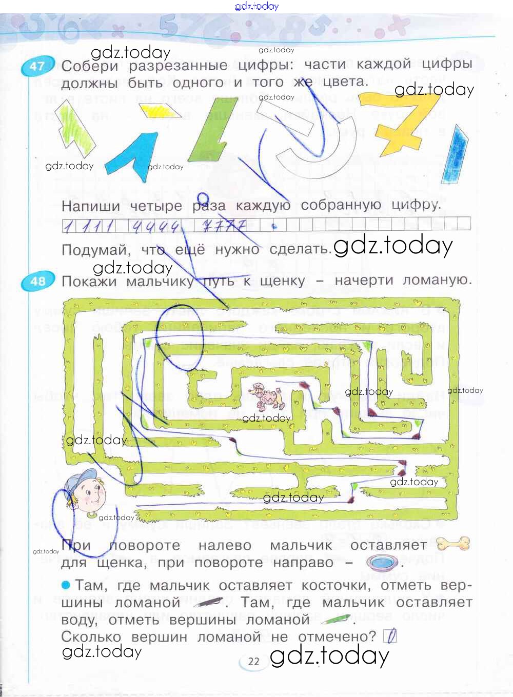 На страницах сайта gdz.today вы найдете учебный и вспомогательный материал, направленный на улучшения знаний школьной программы. ГДЗ - онлайн мир знаний Решение к части 2. Страницы 22 Рабочей тетради по Математике для 1 класса Бененсон Фёдоров 2015