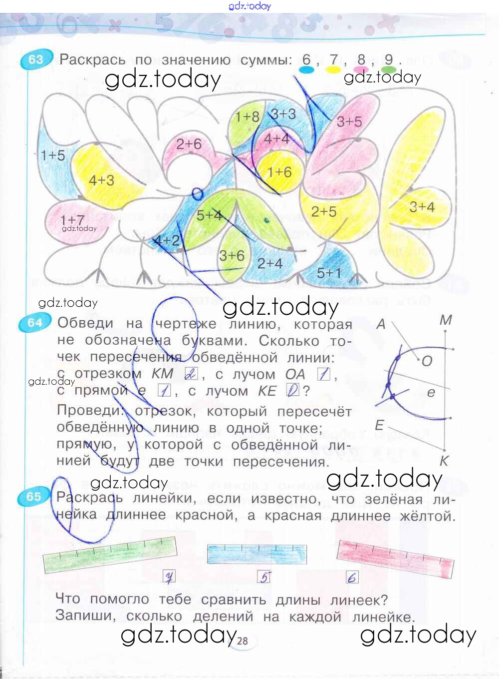 На страницах сайта gdz.today вы найдете учебный и вспомогательный материал, направленный на улучшения знаний школьной программы. ГДЗ - онлайн мир знаний Решение к части 2. Страницы 28 Рабочей тетради по Математике для 1 класса Бененсон Фёдоров 2015