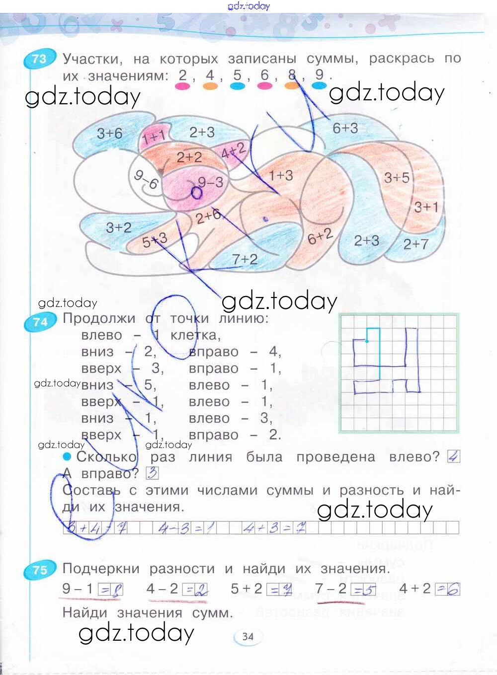 На страницах сайта gdz.today вы найдете учебный и вспомогательный материал, направленный на улучшения знаний школьной программы. ГДЗ - онлайн мир знаний Решение к части 2. Страницы 34 Рабочей тетради по Математике для 1 класса Бененсон Фёдоров 2015