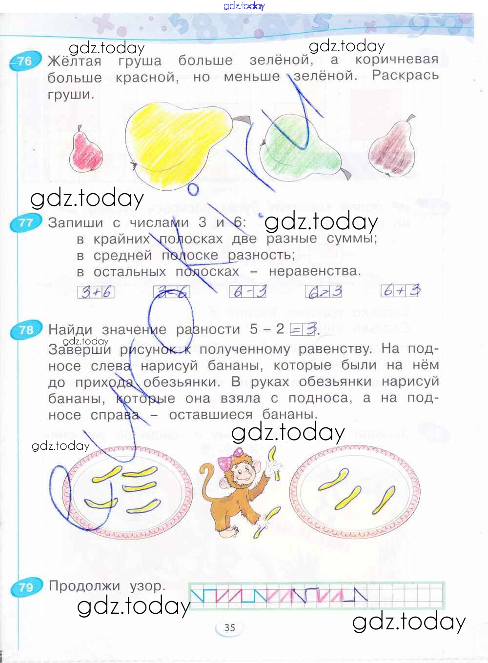 На страницах сайта gdz.today вы найдете учебный и вспомогательный материал, направленный на улучшения знаний школьной программы. ГДЗ - онлайн мир знаний Решение к части 2. Страницы 35 Рабочей тетради по Математике для 1 класса Бененсон Фёдоров 2015