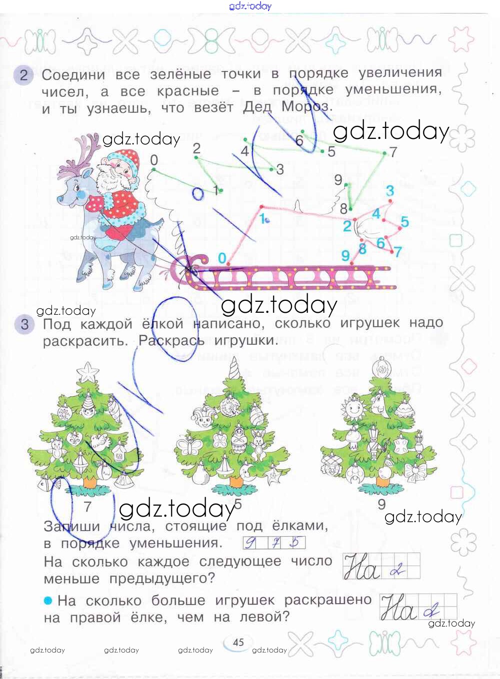 На страницах сайта gdz.today вы найдете учебный и вспомогательный материал, направленный на улучшения знаний школьной программы. ГДЗ - онлайн мир знаний Решение к части 2. Страницы 45 Рабочей тетради по Математике для 1 класса Бененсон Фёдоров 2015
