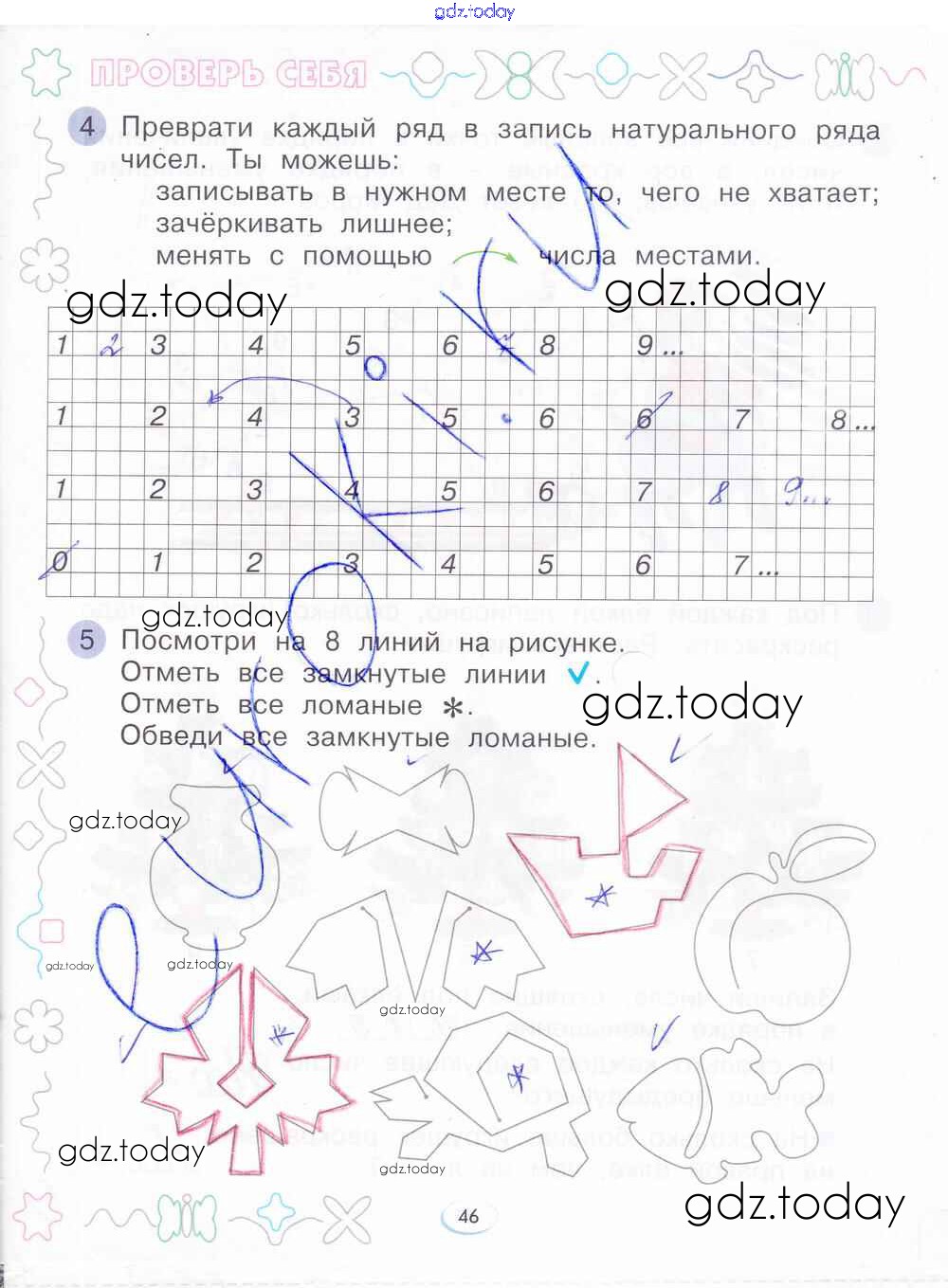 На страницах сайта gdz.today вы найдете учебный и вспомогательный материал, направленный на улучшения знаний школьной программы. ГДЗ - онлайн мир знаний Решение к части 2. Страницы 46 Рабочей тетради по Математике для 1 класса Бененсон Фёдоров 2015