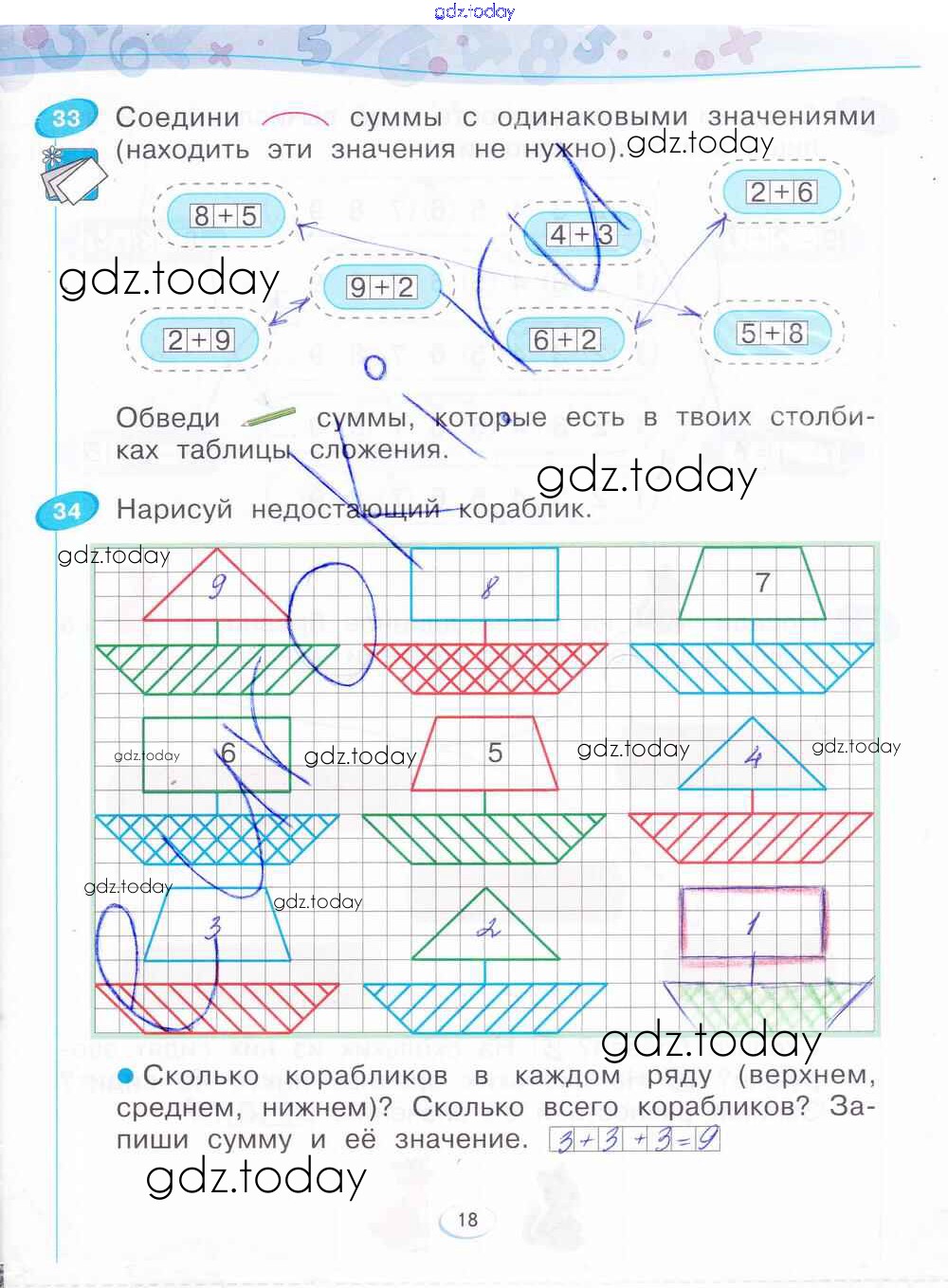 На страницах сайта gdz.today вы найдете учебный и вспомогательный материал, направленный на улучшения знаний школьной программы. ГДЗ - онлайн мир знаний Решение к части 3. Страницы 18 Рабочей тетради по Математике для 1 класса Бененсон Фёдоров 2015
