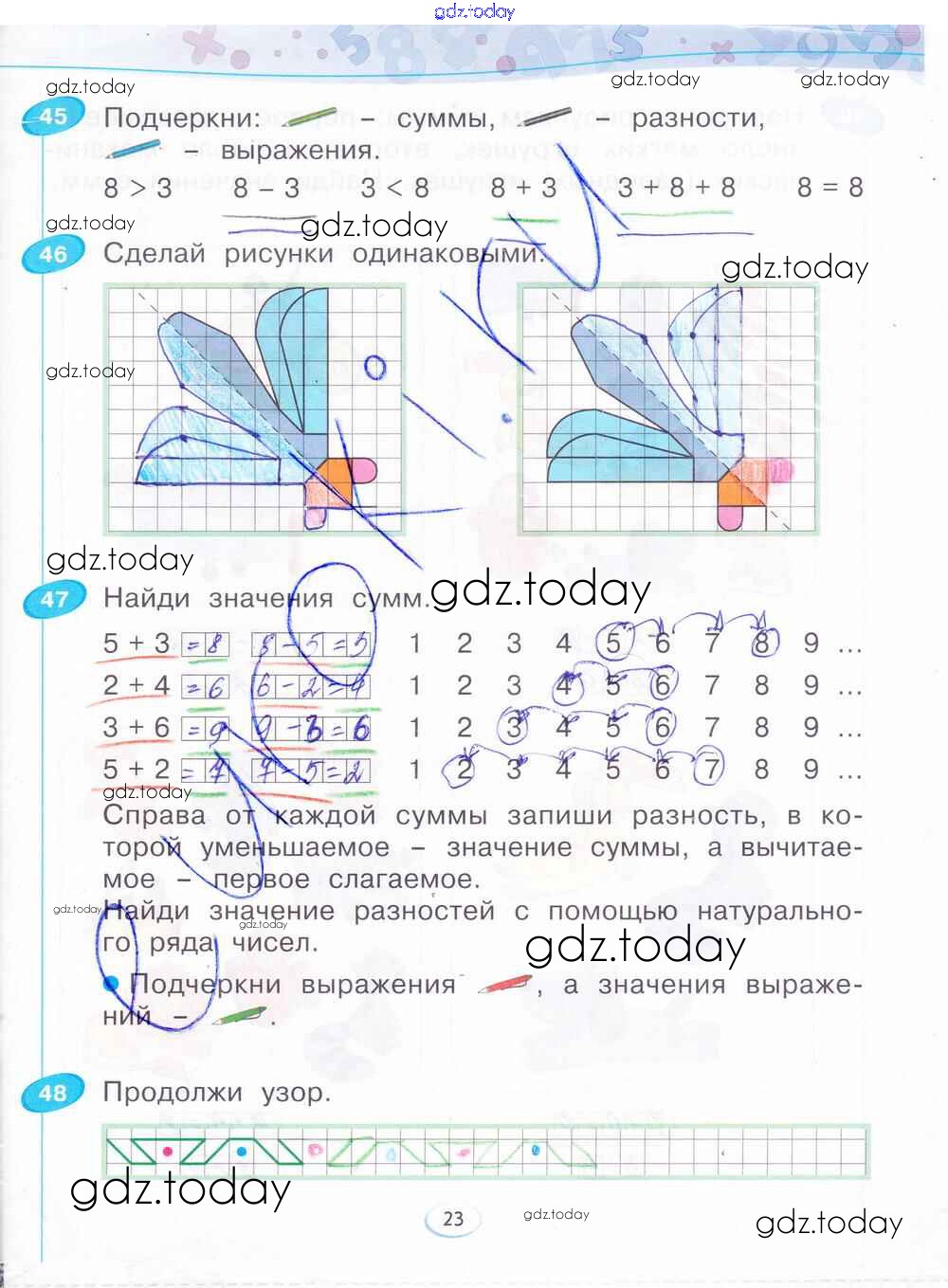 На страницах сайта gdz.today вы найдете учебный и вспомогательный материал, направленный на улучшения знаний школьной программы. ГДЗ - онлайн мир знаний Решение к части 3. Страницы 23 Рабочей тетради по Математике для 1 класса Бененсон Фёдоров 2015