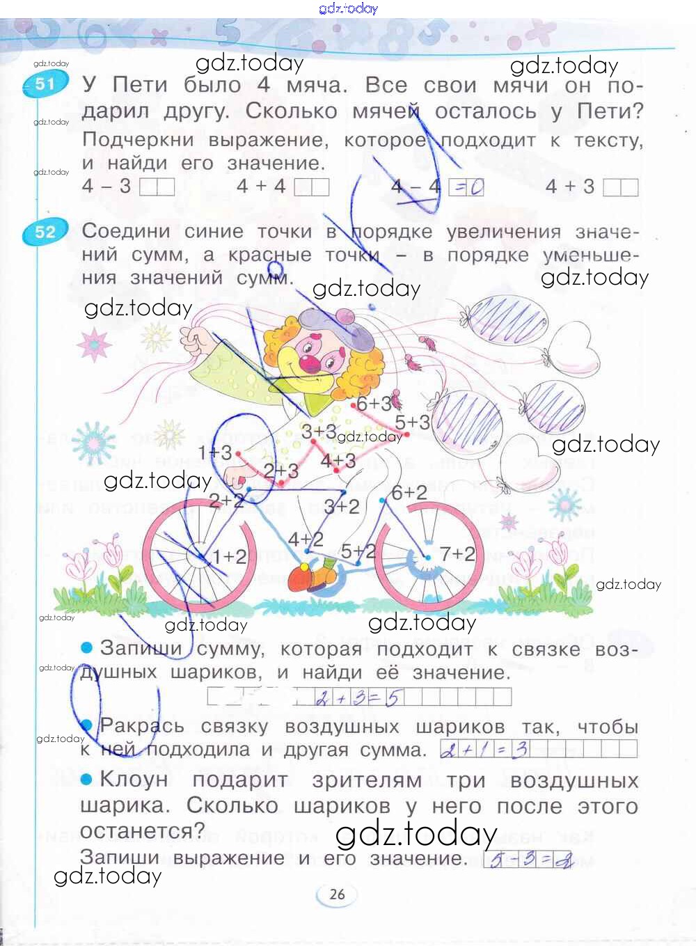 На страницах сайта gdz.today вы найдете учебный и вспомогательный материал, направленный на улучшения знаний школьной программы. ГДЗ - онлайн мир знаний Решение к части 3. Страницы 26 Рабочей тетради по Математике для 1 класса Бененсон Фёдоров 2015