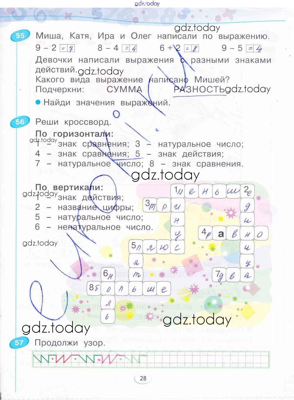 На страницах сайта gdz.today вы найдете учебный и вспомогательный материал, направленный на улучшения знаний школьной программы. ГДЗ - онлайн мир знаний Решение к части 3. Страницы 28 Рабочей тетради по Математике для 1 класса Бененсон Фёдоров 2015