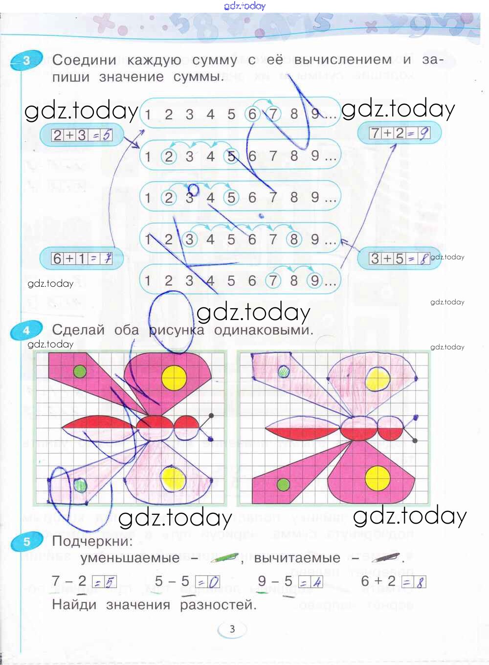 На страницах сайта gdz.today вы найдете учебный и вспомогательный материал, направленный на улучшения знаний школьной программы. ГДЗ - онлайн мир знаний Решение к части 3. Страницы 3 Рабочей тетради по Математике для 1 класса Бененсон Фёдоров 2015