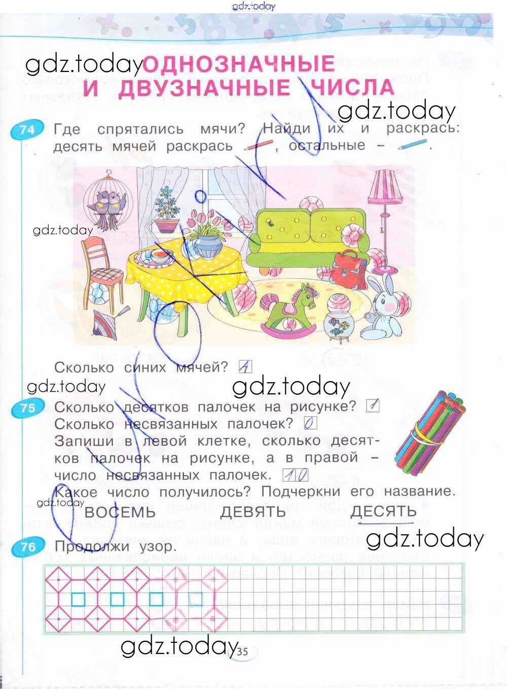На страницах сайта gdz.today вы найдете учебный и вспомогательный материал, направленный на улучшения знаний школьной программы. ГДЗ - онлайн мир знаний Решение к части 3. Страницы 35 Рабочей тетради по Математике для 1 класса Бененсон Фёдоров 2015