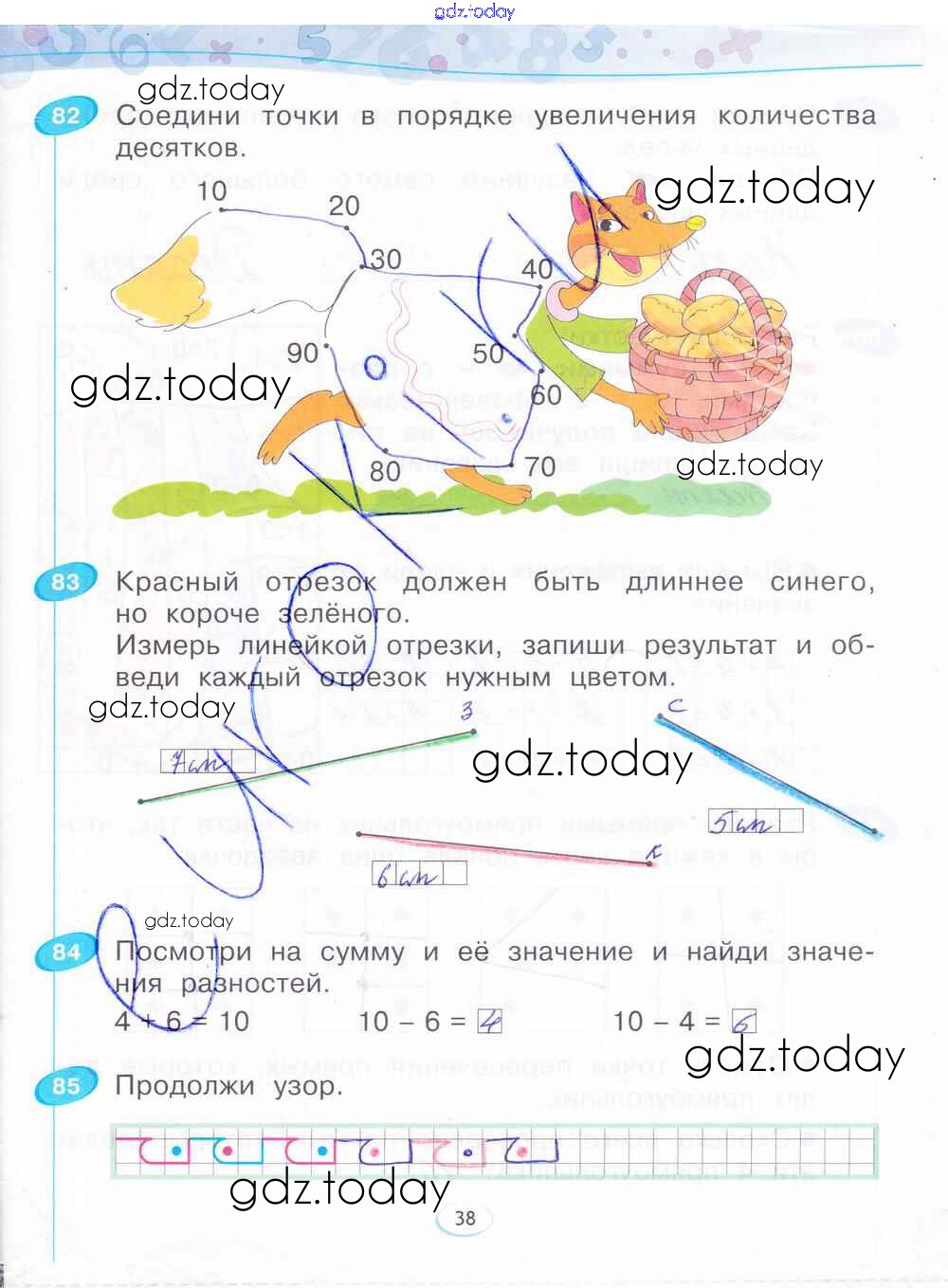На страницах сайта gdz.today вы найдете учебный и вспомогательный материал, направленный на улучшения знаний школьной программы. ГДЗ - онлайн мир знаний Решение к части 3. Страницы 38 Рабочей тетради по Математике для 1 класса Бененсон Фёдоров 2015