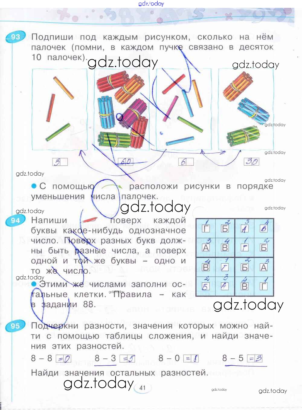На страницах сайта gdz.today вы найдете учебный и вспомогательный материал, направленный на улучшения знаний школьной программы. ГДЗ - онлайн мир знаний Решение к части 3. Страницы 41 Рабочей тетради по Математике для 1 класса Бененсон Фёдоров 2015