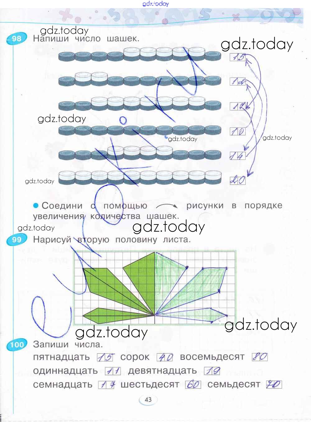 На страницах сайта gdz.today вы найдете учебный и вспомогательный материал, направленный на улучшения знаний школьной программы. ГДЗ - онлайн мир знаний Решение к части 3. Страницы 43 Рабочей тетради по Математике для 1 класса Бененсон Фёдоров 2015