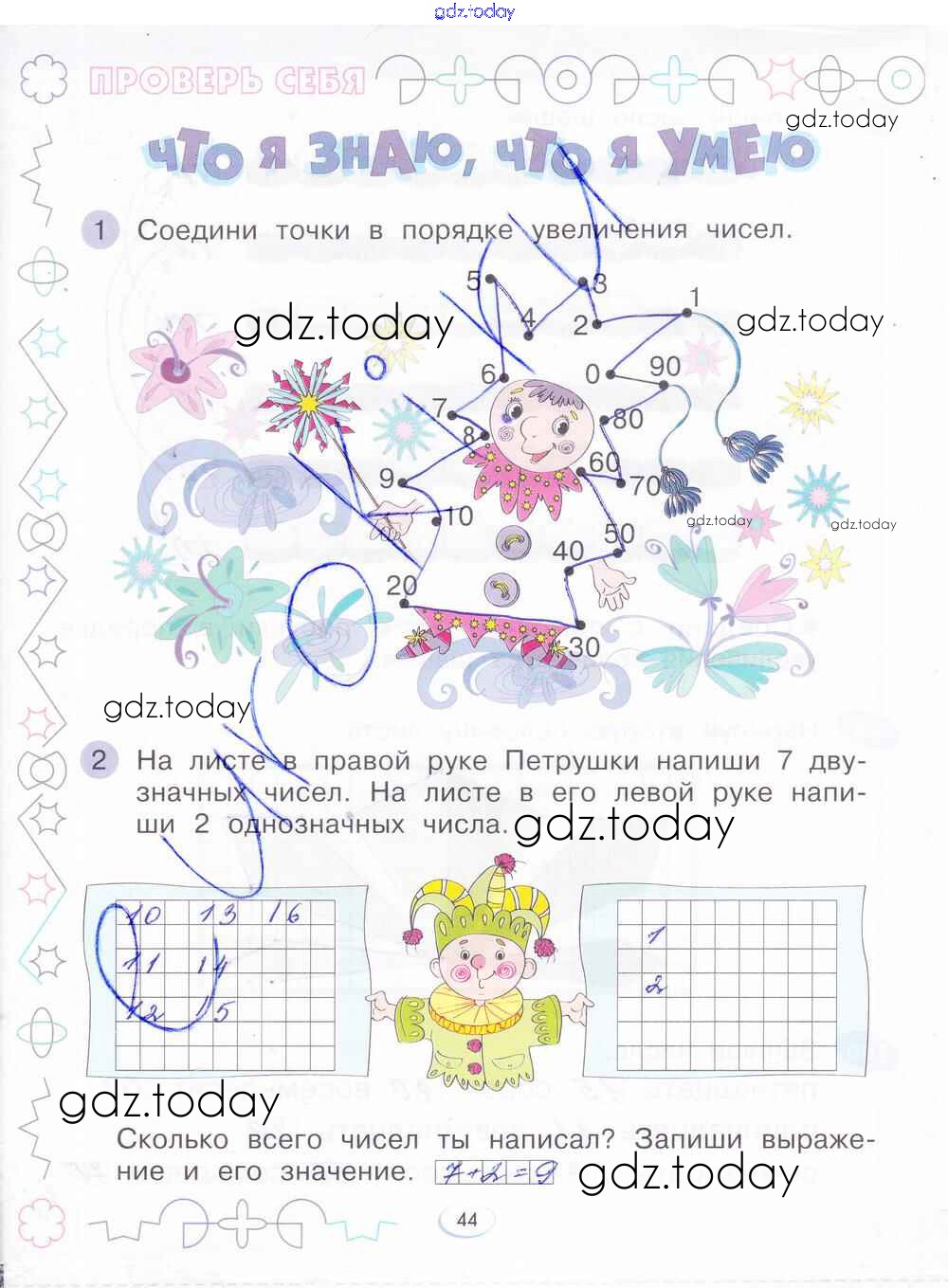 На страницах сайта gdz.today вы найдете учебный и вспомогательный материал, направленный на улучшения знаний школьной программы. ГДЗ - онлайн мир знаний Решение к части 3. Страницы 44 Рабочей тетради по Математике для 1 класса Бененсон Фёдоров 2015