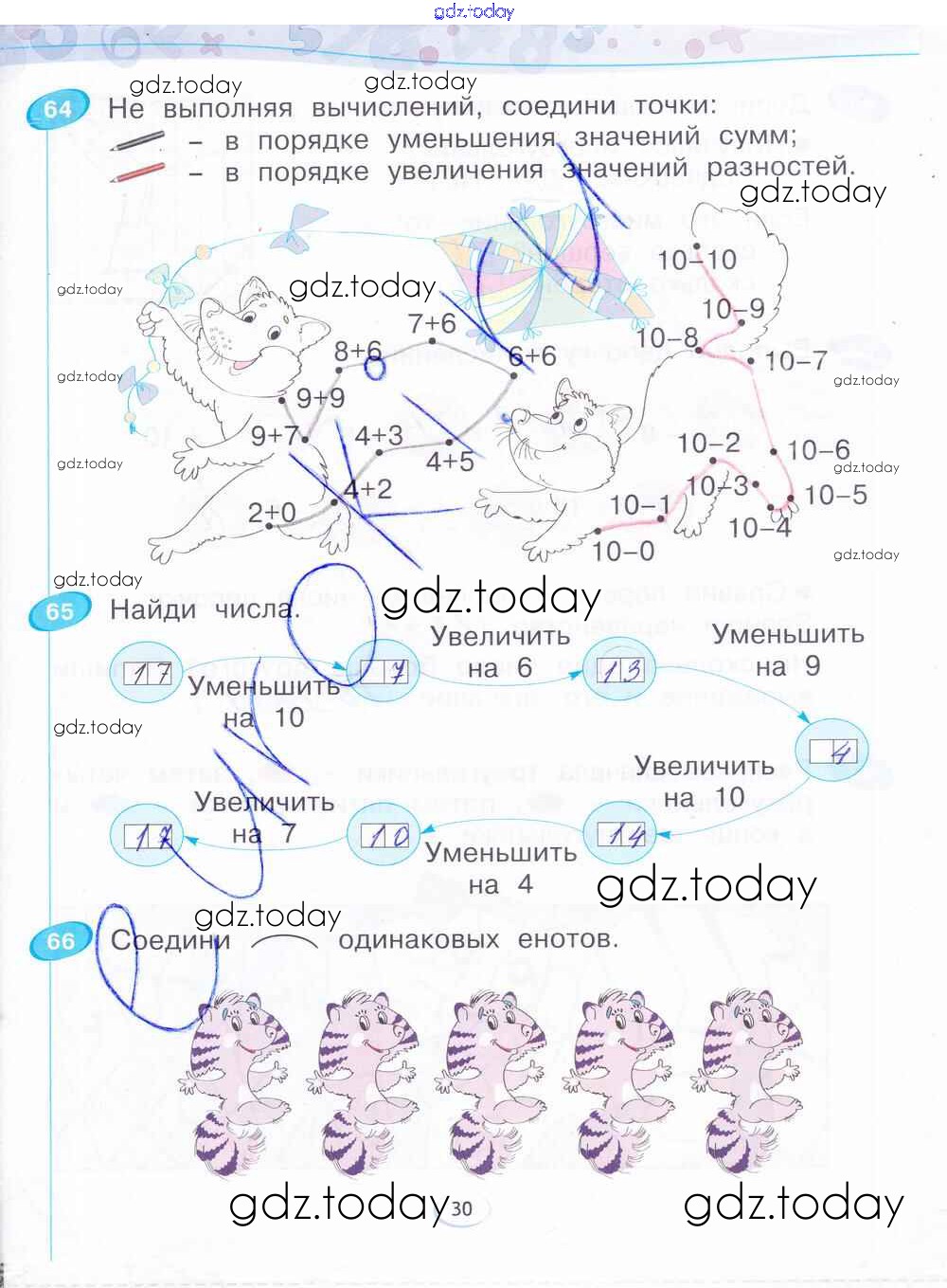 На страницах сайта gdz.today вы найдете учебный и вспомогательный материал, направленный на улучшения знаний школьной программы. ГДЗ - онлайн мир знаний Решение к части 4. Страницы 30 Рабочей тетради по Математике для 1 класса Бененсон Фёдоров 2015