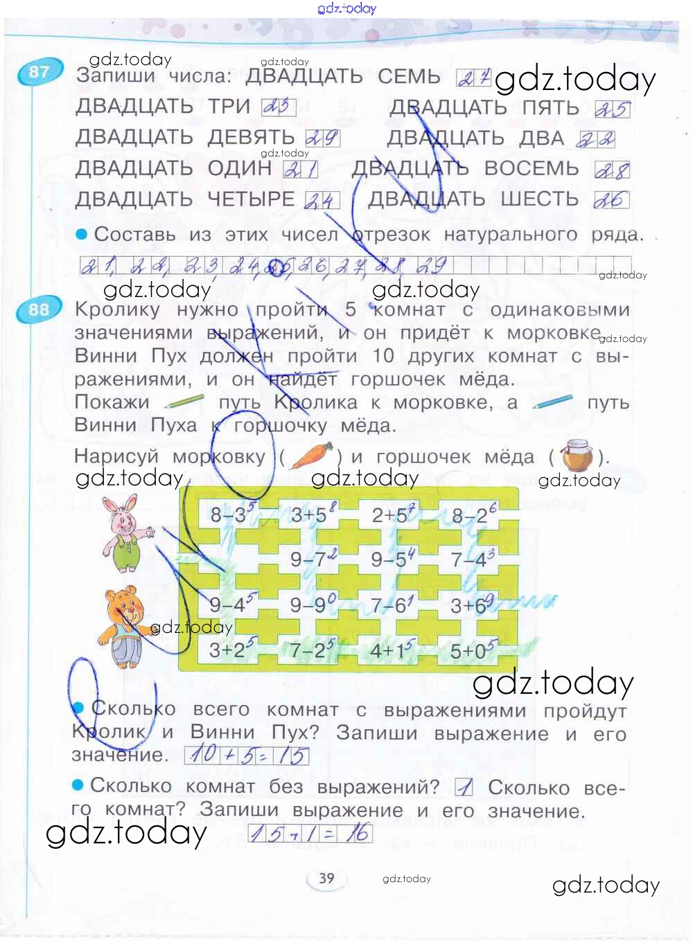 На страницах сайта gdz.today вы найдете учебный и вспомогательный материал, направленный на улучшения знаний школьной программы. ГДЗ - онлайн мир знаний Решение к части 4. Страницы 39 Рабочей тетради по Математике для 1 класса Бененсон Фёдоров 2015