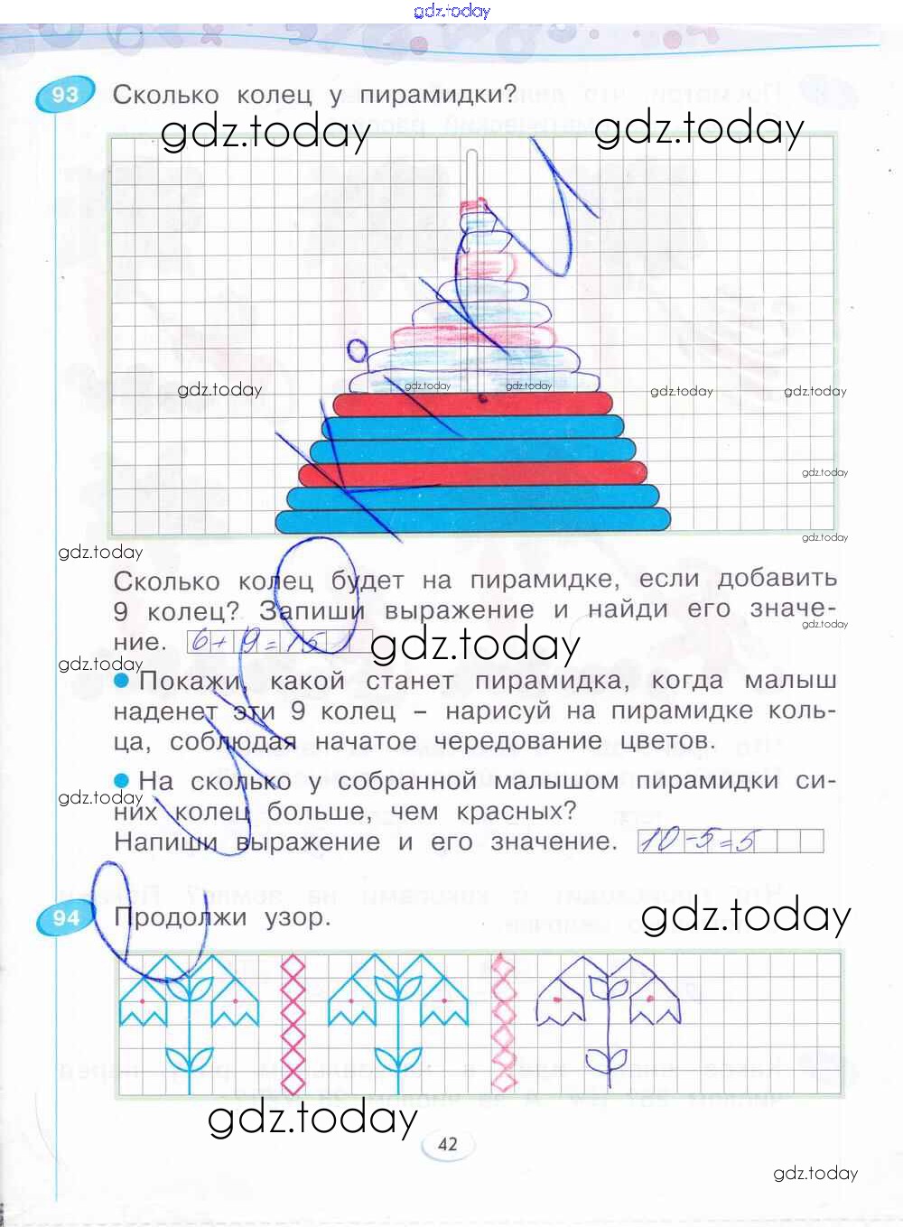 На страницах сайта gdz.today вы найдете учебный и вспомогательный материал, направленный на улучшения знаний школьной программы. ГДЗ - онлайн мир знаний Решение к части 4. Страницы 42 Рабочей тетради по Математике для 1 класса Бененсон Фёдоров 2015