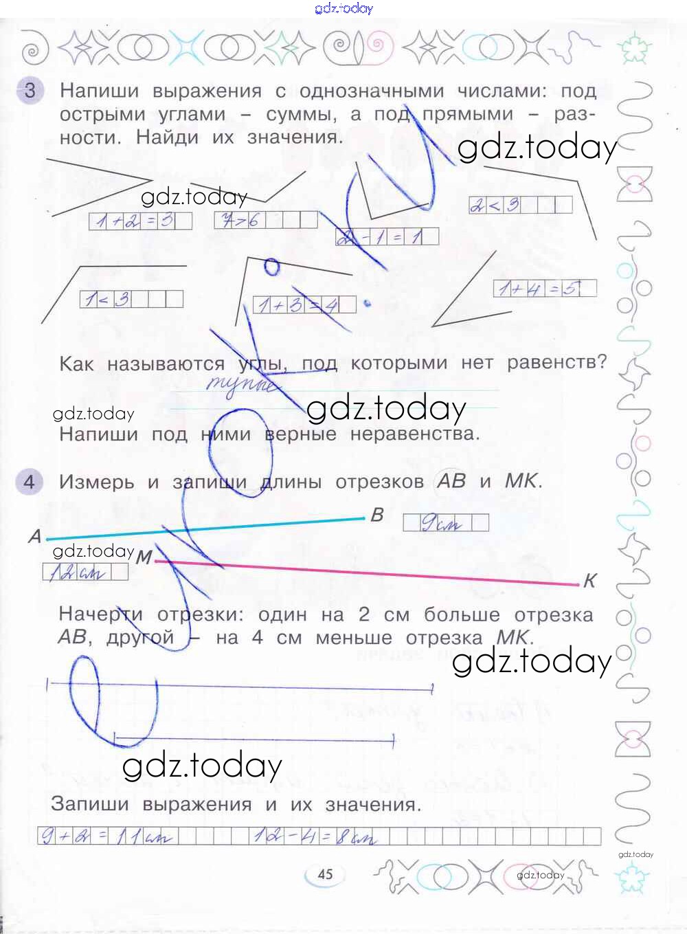 На страницах сайта gdz.today вы найдете учебный и вспомогательный материал, направленный на улучшения знаний школьной программы. ГДЗ - онлайн мир знаний Решение к части 4. Страницы 45 Рабочей тетради по Математике для 1 класса Бененсон Фёдоров 2015