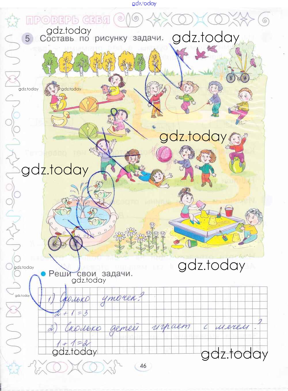 На страницах сайта gdz.today вы найдете учебный и вспомогательный материал, направленный на улучшения знаний школьной программы. ГДЗ - онлайн мир знаний Решение к части 4. Страницы 46 Рабочей тетради по Математике для 1 класса Бененсон Фёдоров 2015