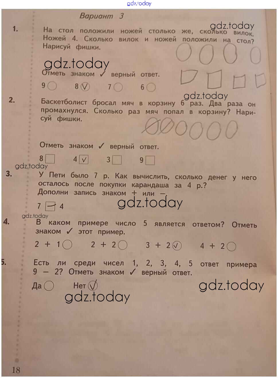На страницах сайта gdz.today вы найдете учебный и вспомогательный материал, направленный на улучшения знаний школьной программы. ГДЗ - онлайн мир знаний Страницы (решение) 18 Тетради для проверочных работ по Математике для 1 класса Рудницкая Вентана-граф Начальная школа XXI века 2020