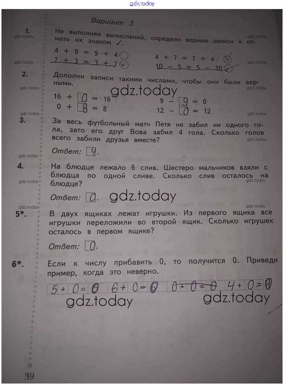На страницах сайта gdz.today вы найдете учебный и вспомогательный материал, направленный на улучшения знаний школьной программы. ГДЗ - онлайн мир знаний Страницы (решение) 39 Тетради для проверочных работ по Математике для 1 класса Рудницкая Вентана-граф Начальная школа XXI века 2020