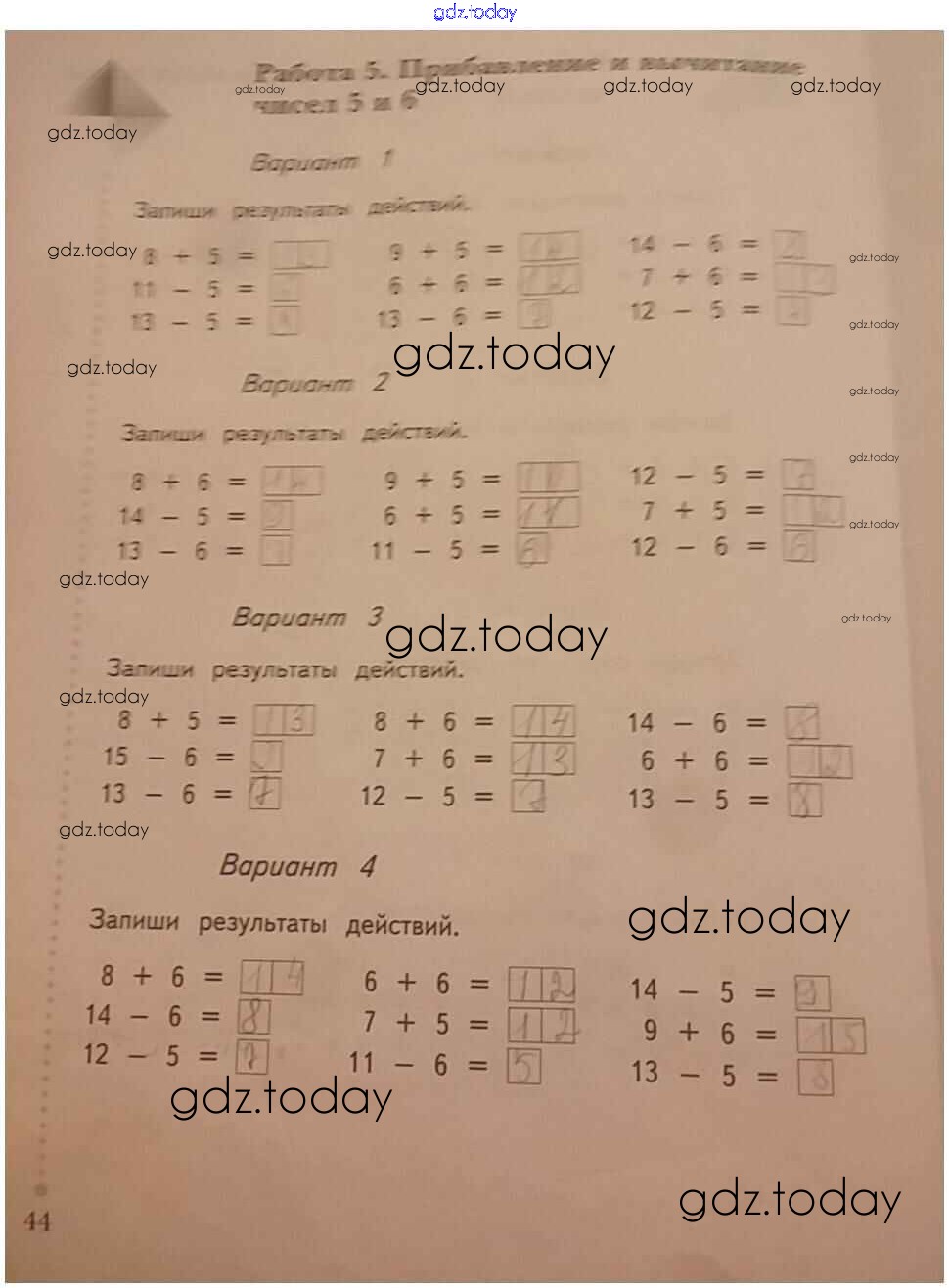 На страницах сайта gdz.today вы найдете учебный и вспомогательный материал, направленный на улучшения знаний школьной программы. ГДЗ - онлайн мир знаний Страницы (решение) 44 Тетради для проверочных работ по Математике для 1 класса Рудницкая Вентана-граф Начальная школа XXI века 2020