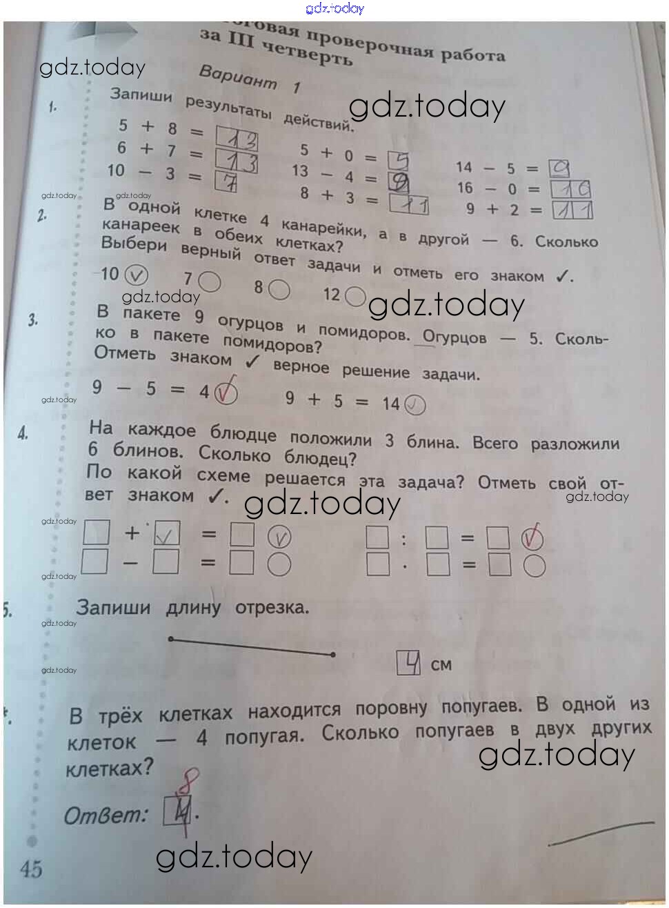 На страницах сайта gdz.today вы найдете учебный и вспомогательный материал, направленный на улучшения знаний школьной программы. ГДЗ - онлайн мир знаний Страницы (решение) 45 Тетради для проверочных работ по Математике для 1 класса Рудницкая Вентана-граф Начальная школа XXI века 2020