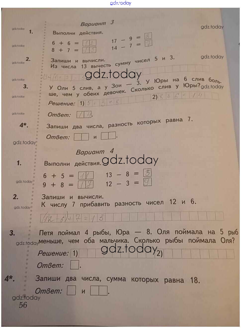 На страницах сайта gdz.today вы найдете учебный и вспомогательный материал, направленный на улучшения знаний школьной программы. ГДЗ - онлайн мир знаний Страницы (решение) 56 Тетради для проверочных работ по Математике для 1 класса Рудницкая Вентана-граф Начальная школа XXI века 2020