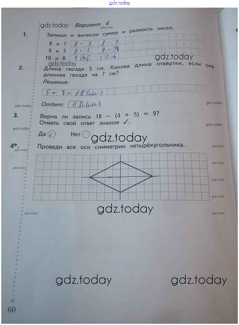 На страницах сайта gdz.today вы найдете учебный и вспомогательный материал, направленный на улучшения знаний школьной программы. ГДЗ - онлайн мир знаний Страницы (решение) 60 Тетради для проверочных работ по Математике для 1 класса Рудницкая Вентана-граф Начальная школа XXI века 2020