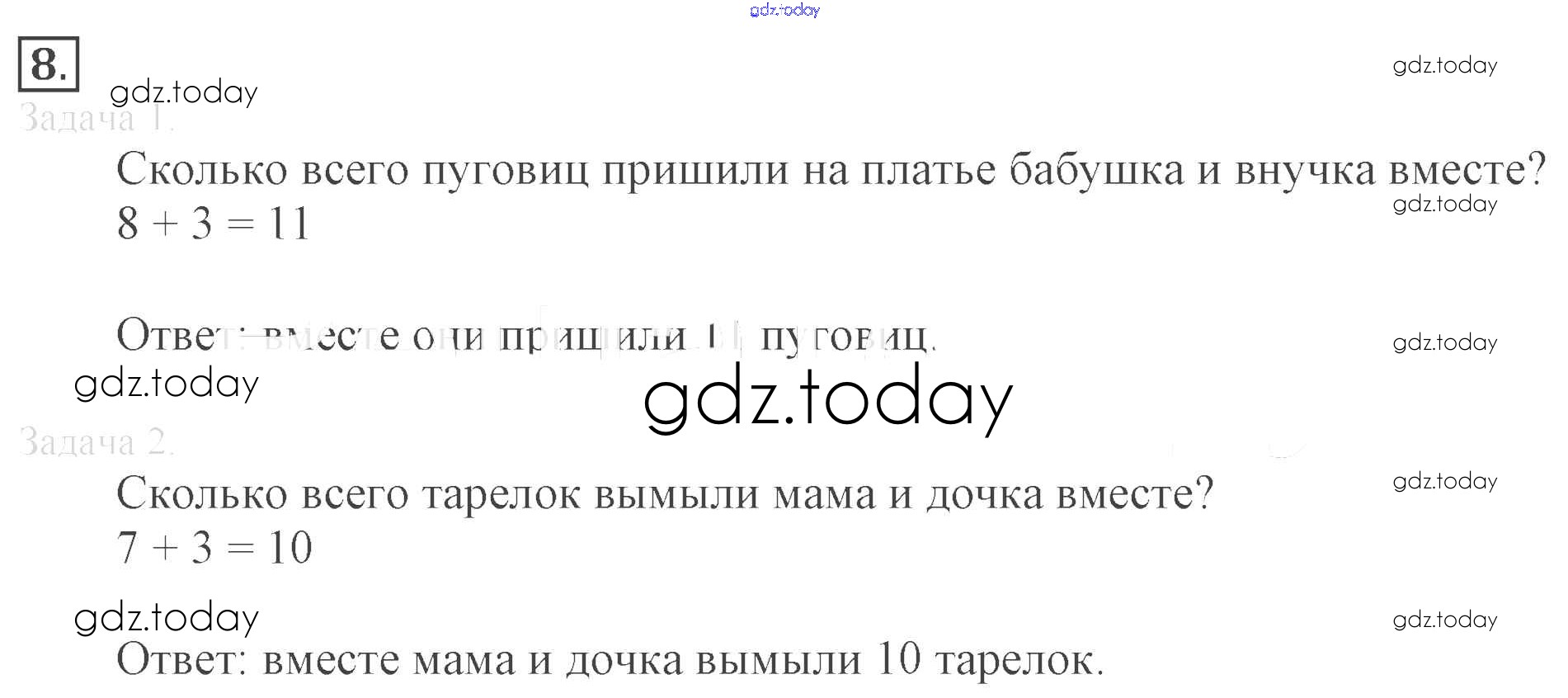 Ответы к Прибавление числа 3 (стр. 47–52) Решение к части 2 Упр.8 Учебнику по Математике для 1 класса Рудницкая, Кочурова Вентана-граф Начальная школа XXI века 2016
