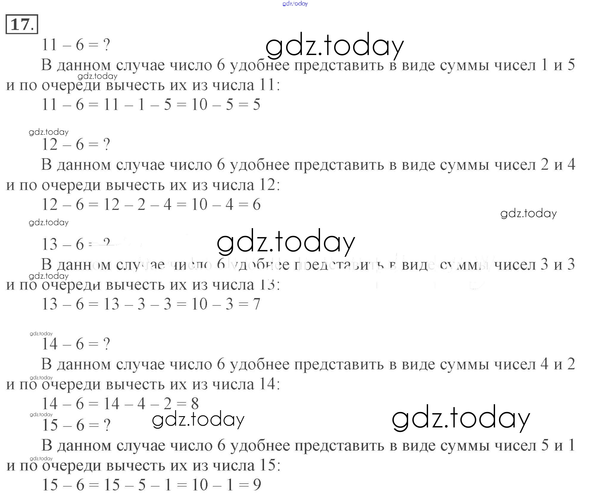 Ответы к Прибавление и вычитание числа 6 (стр. 75–83) Решение к части 2 Упр.17 Учебнику по Математике для 1 класса Рудницкая, Кочурова Вентана-граф Начальная школа XXI века 2016