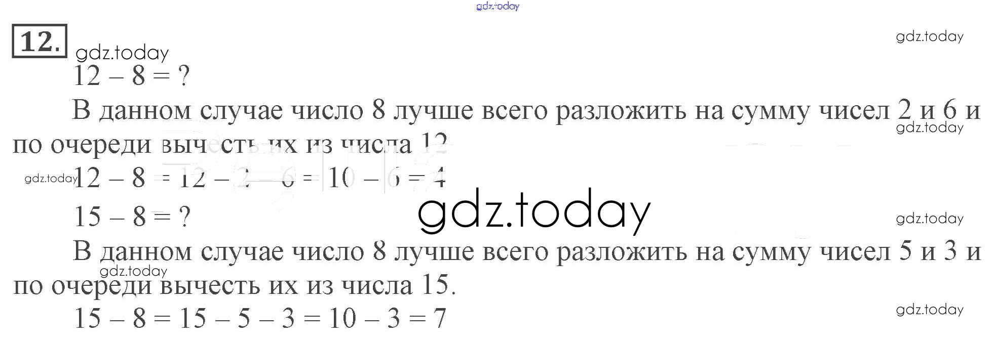 Ответы к Вычитание чисел 7 8 9 (стр. 115–123) Решение к части 2 Упр.12 Учебнику по Математике для 1 класса Рудницкая, Кочурова Вентана-граф Начальная школа XXI века 2016