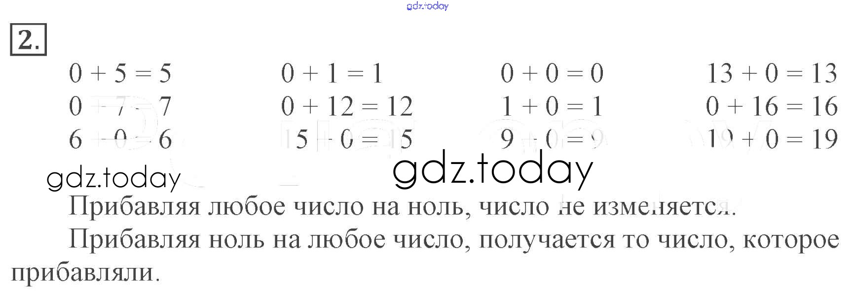На страницах сайта gdz.today вы найдете учебный и вспомогательный материал, направленный на улучшения знаний школьной программы. ГДЗ - онлайн мир знаний Сложение с числом 0 (стр. 12–15) Решение к части 2 Упр.2 Учебнику по Математике для 1 класса Рудницкая, Кочурова Вентана-граф Начальная школа XXI века 2016