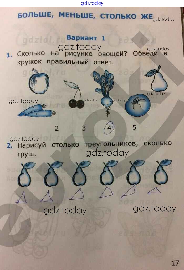Ответы к Решение к части 1. Страницы 17 Самостоятельным работам по Математике для 1 класса Самсонова Экзамен УМК 2014