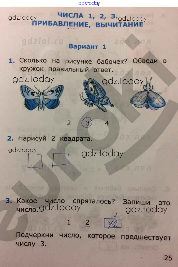 Ответы к Решение к части 1. Страницы 25 Самостоятельным работам по Математике для 1 класса Самсонова Экзамен УМК 2014