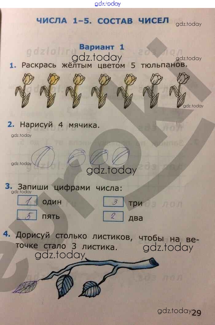 На страницах сайта gdz.today вы найдете учебный и вспомогательный материал, направленный на улучшения знаний школьной программы. ГДЗ - онлайн мир знаний Решение к части 1. Страницы 29 Самостоятельным работам по Математике для 1 класса Самсонова Экзамен УМК 2014