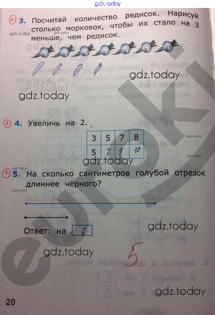 На страницах сайта gdz.today вы найдете учебный и вспомогательный материал, направленный на улучшения знаний школьной программы. ГДЗ - онлайн мир знаний Решение к части 2. Страницы 20 Самостоятельным работам по Математике для 1 класса Самсонова Экзамен УМК 2014