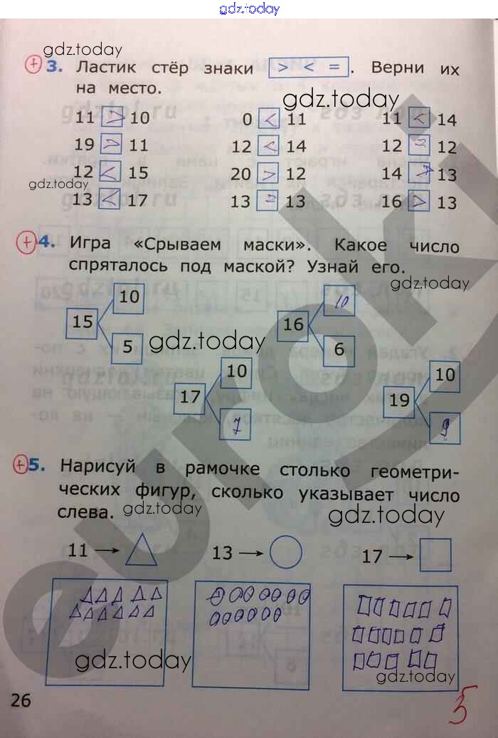 На страницах сайта gdz.today вы найдете учебный и вспомогательный материал, направленный на улучшения знаний школьной программы. ГДЗ - онлайн мир знаний Решение к части 2. Страницы 26 Самостоятельным работам по Математике для 1 класса Самсонова Экзамен УМК 2014