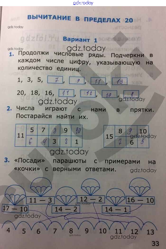 На страницах сайта gdz.today вы найдете учебный и вспомогательный материал, направленный на улучшения знаний школьной программы. ГДЗ - онлайн мир знаний Решение к части 2. Страницы 33 Самостоятельным работам по Математике для 1 класса Самсонова Экзамен УМК 2014