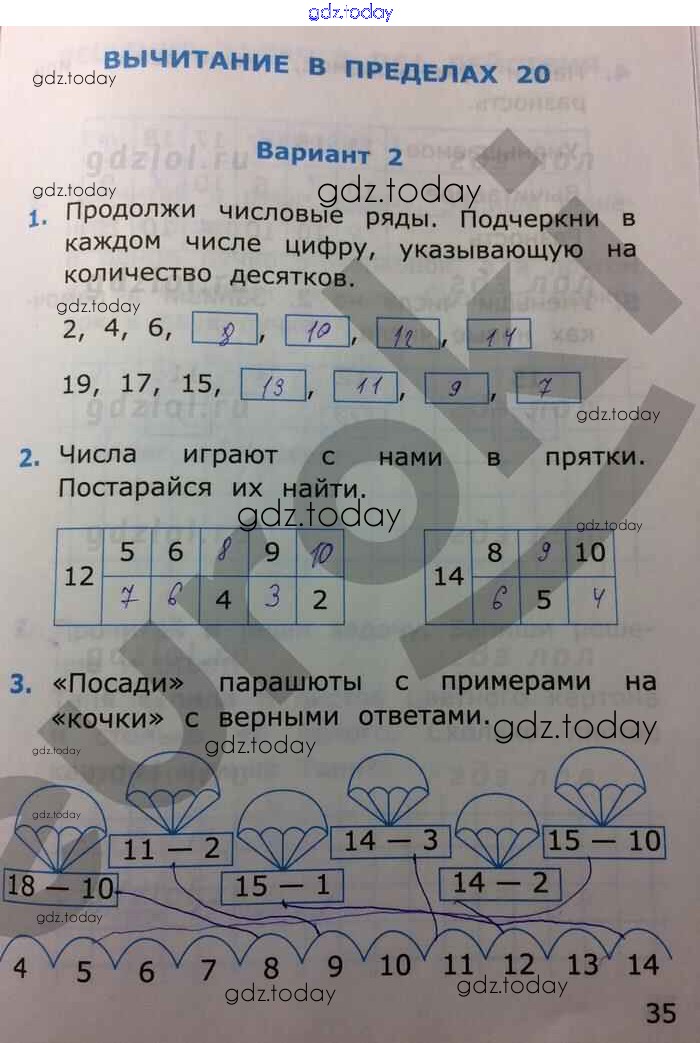 На страницах сайта gdz.today вы найдете учебный и вспомогательный материал, направленный на улучшения знаний школьной программы. ГДЗ - онлайн мир знаний Решение к части 2. Страницы 35 Самостоятельным работам по Математике для 1 класса Самсонова Экзамен УМК 2014