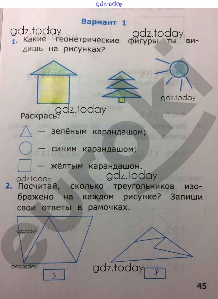 На страницах сайта gdz.today вы найдете учебный и вспомогательный материал, направленный на улучшения знаний школьной программы. ГДЗ - онлайн мир знаний Решение к части 2. Страницы 45 Самостоятельным работам по Математике для 1 класса Самсонова Экзамен УМК 2014