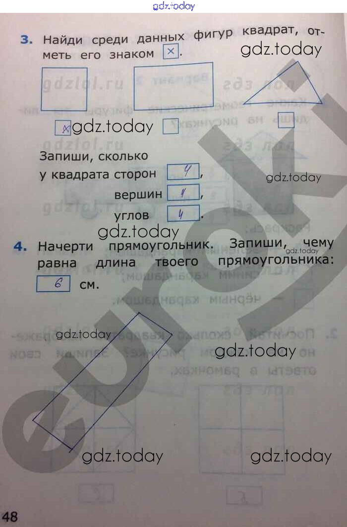 На страницах сайта gdz.today вы найдете учебный и вспомогательный материал, направленный на улучшения знаний школьной программы. ГДЗ - онлайн мир знаний Решение к части 2. Страницы 48 Самостоятельным работам по Математике для 1 класса Самсонова Экзамен УМК 2014