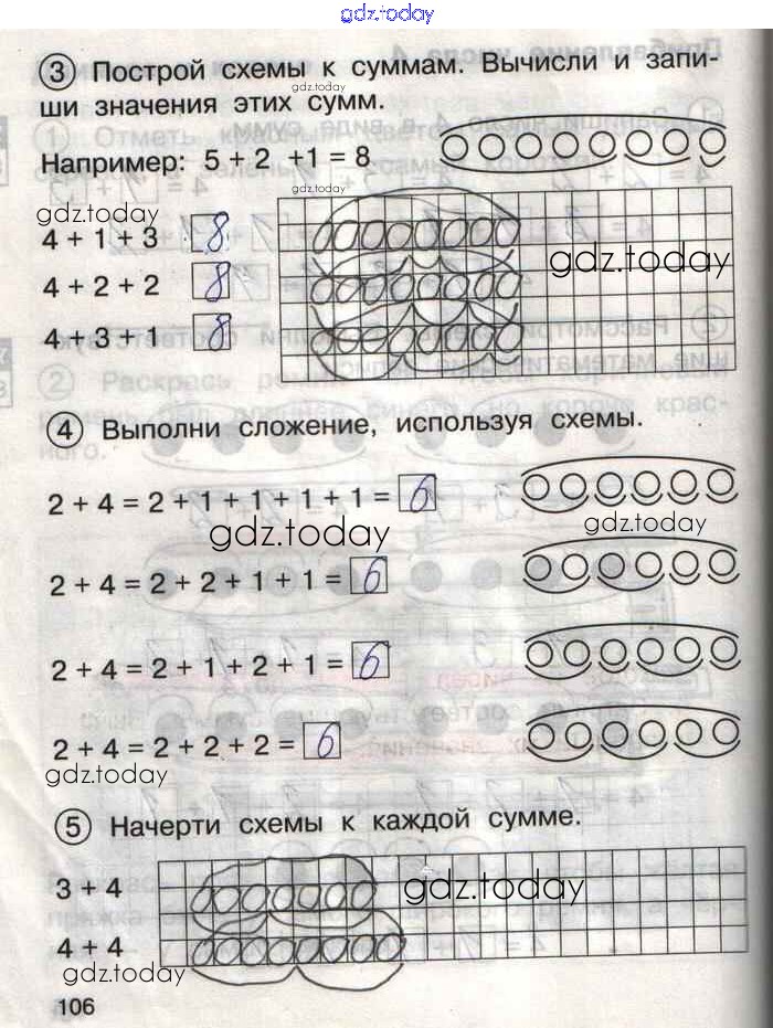 Ответы к Решение к тетради №1. Страницы 106 Тетради для самостоятельной работы по Математике для 1 класса Захарова, Юдина Академкнига Перспективная начальная школа 2016