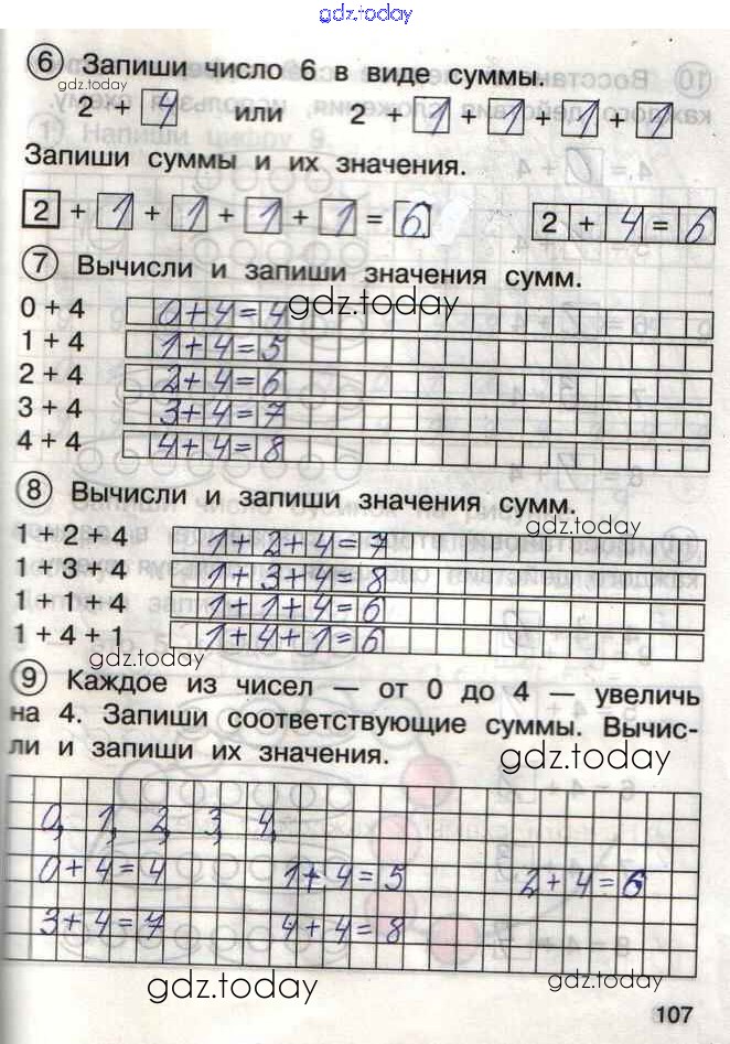 На страницах сайта gdz.today вы найдете учебный и вспомогательный материал, направленный на улучшения знаний школьной программы. ГДЗ - онлайн мир знаний Решение к тетради №1. Страницы 107 Тетради для самостоятельной работы по Математике для 1 класса Захарова, Юдина Академкнига Перспективная начальная школа 2016