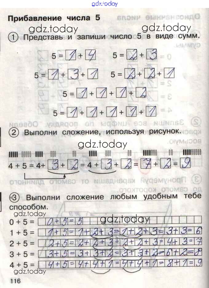Ответы к Решение к тетради №1. Страницы 116 Тетради для самостоятельной работы по Математике для 1 класса Захарова, Юдина Академкнига Перспективная начальная школа 2016