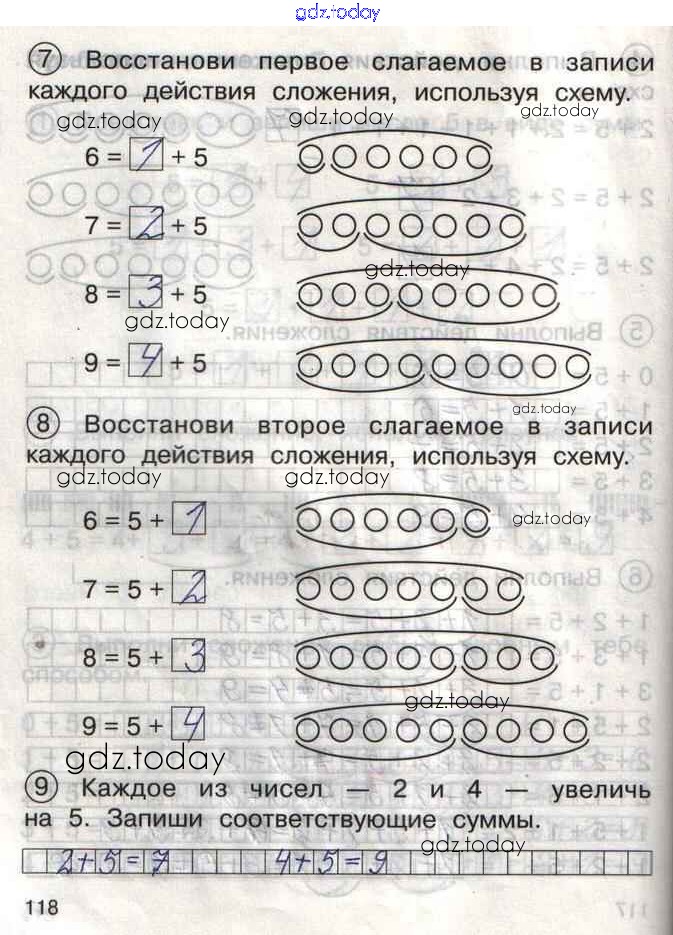 Ответы к Решение к тетради №1. Страницы 118 Тетради для самостоятельной работы по Математике для 1 класса Захарова, Юдина Академкнига Перспективная начальная школа 2016